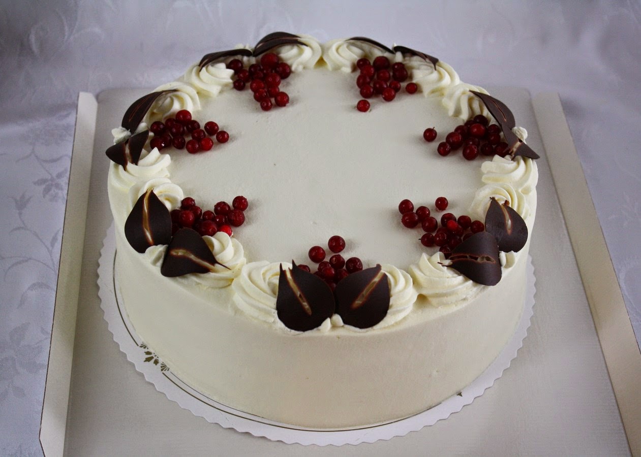 koska koriste oli melko kirjava. Kakun päälle laitoin puolukoita ja suklaalehtiä.